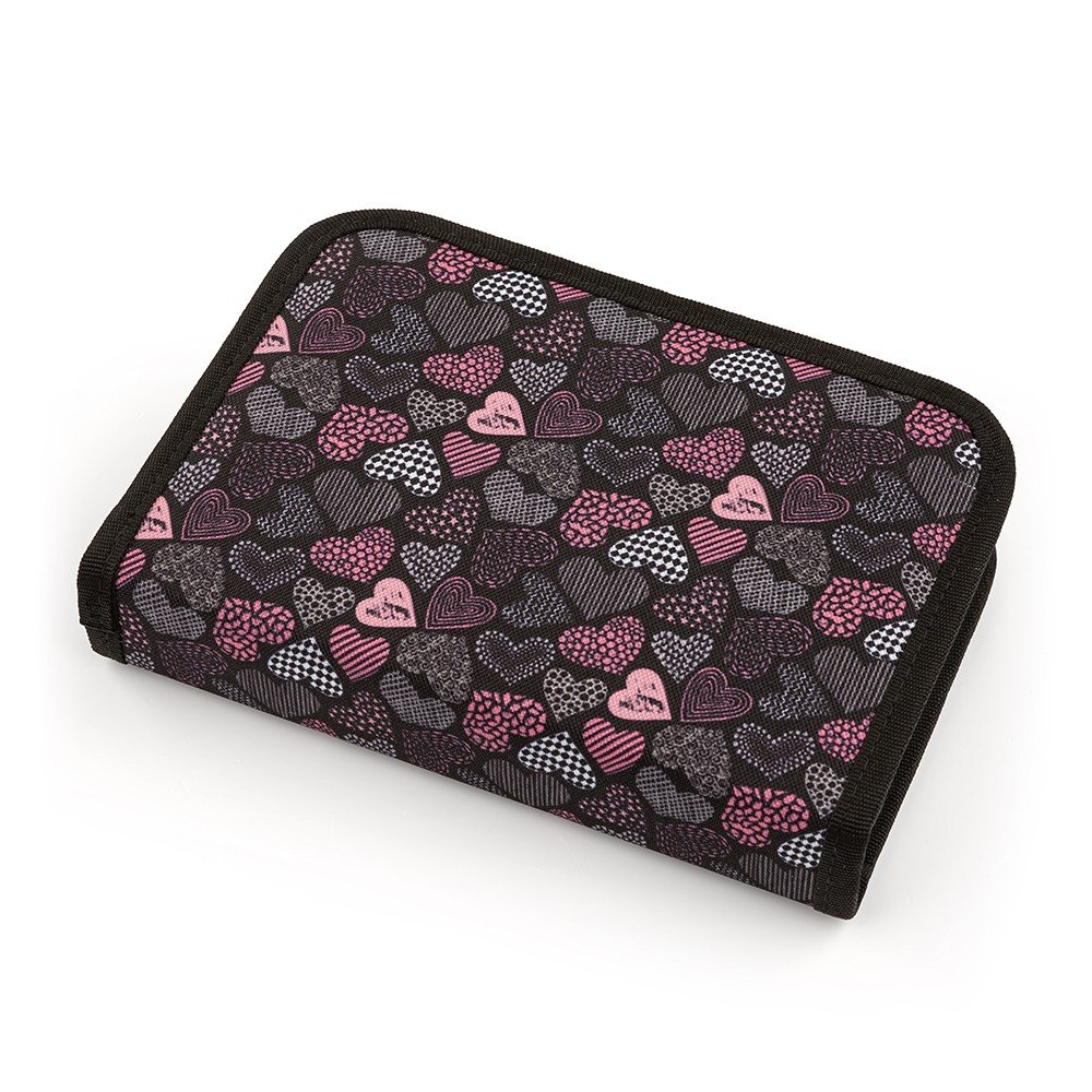 Školní penál holky, dvouchlopňový se spoustou gumiček, motiv pejsek a srdíčka