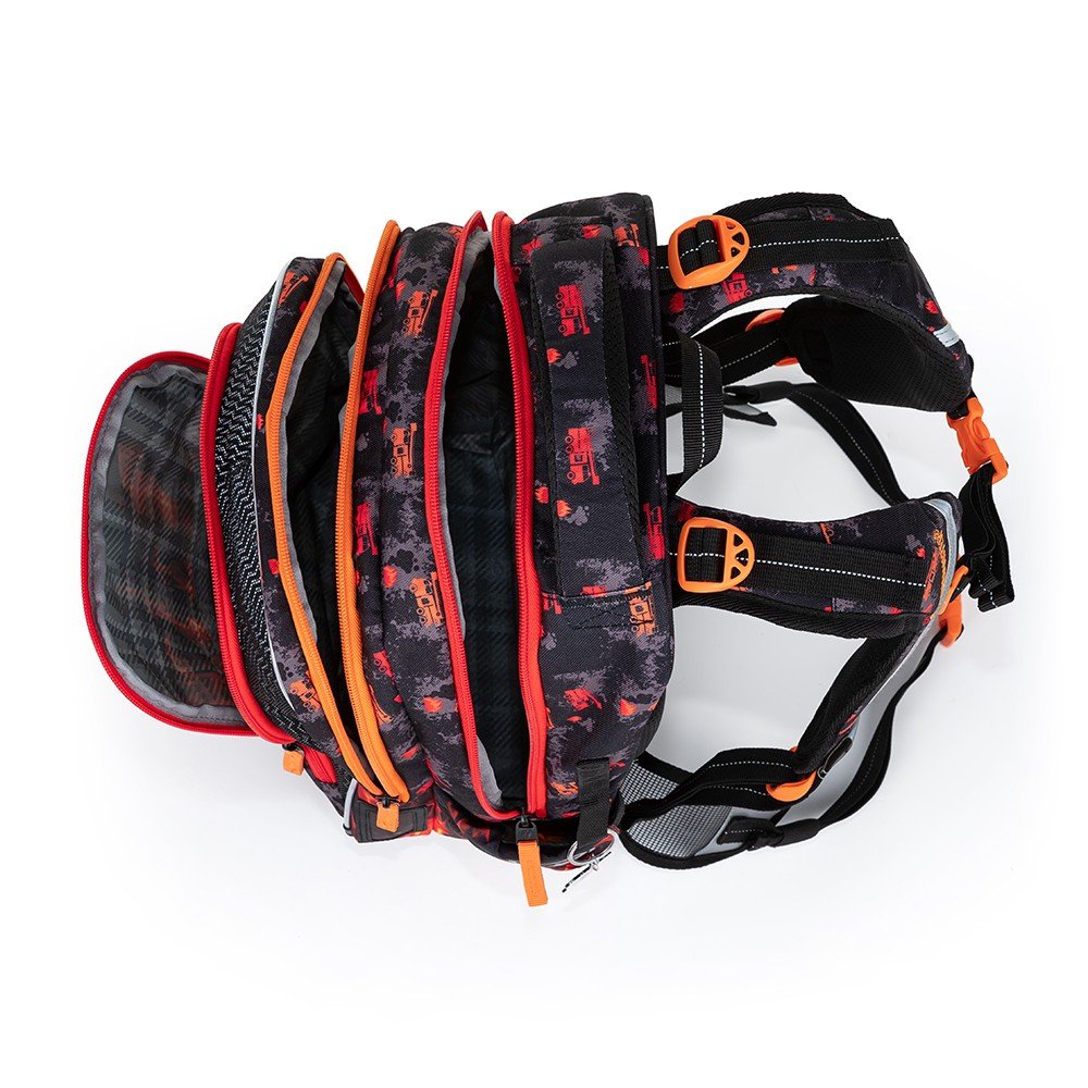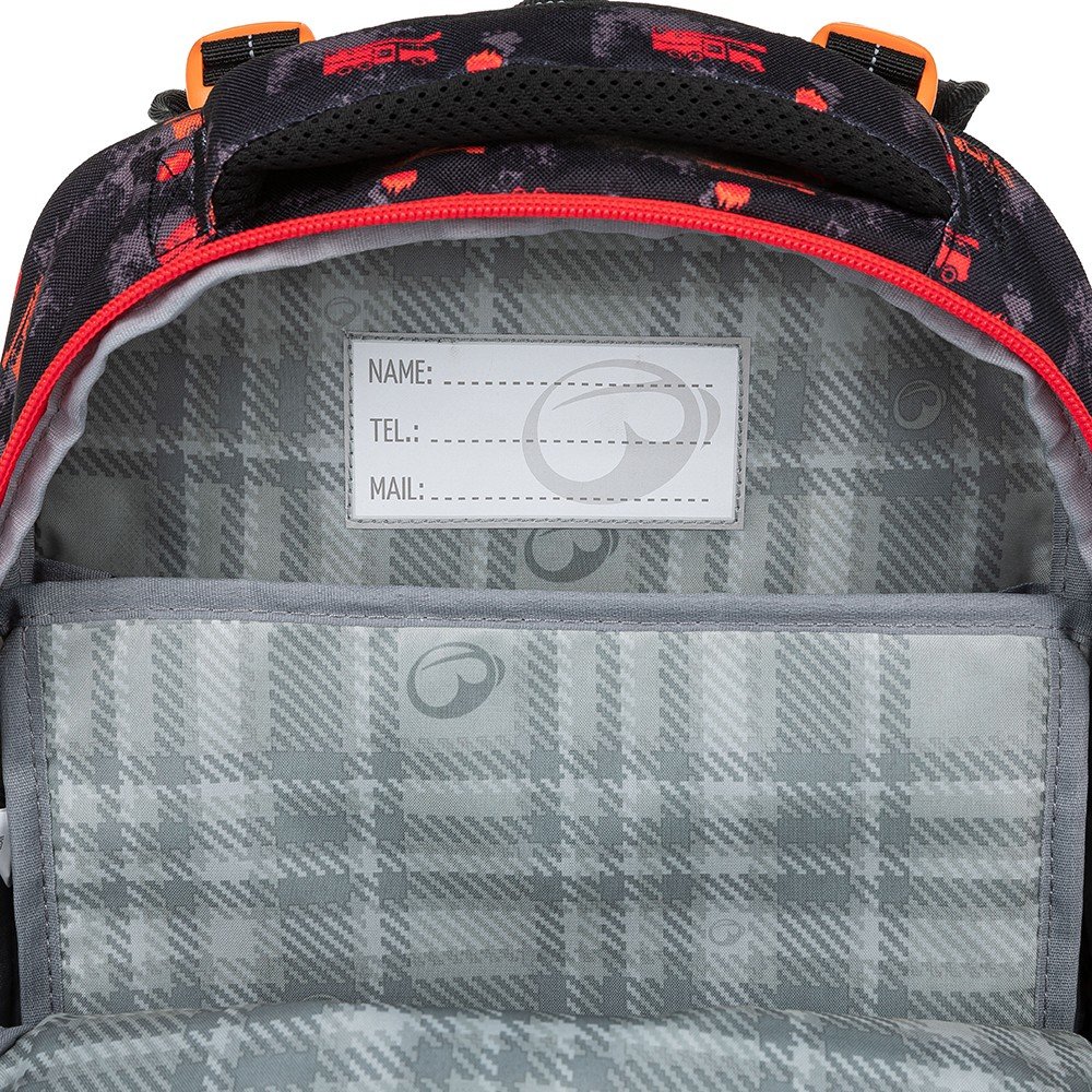 Poplááách! Hasiči jedou! Batoh pro všechny raubíře od 1. do 3. třídy, kteří si rádi hrají na hasiče. Má polstrovaná záda a ramenní popruhy, nastavitelný hrudní a vyjímatelný odlehčený bederní pás. Uvnitř je velmi prostorný. Mobil a peněženka najdou místo v praktickém organizéru v přední kapse. Samonavíjecí klíčenka na čip nebo klíče se dá připnout na boční poutko. Batoh váží necelý kilogram. Má plastové nožky, aby dobře stál nejen u lavice. A školák bude nepřehlédnutelný díky originálnímu motivu i díky reflexním prvkům.