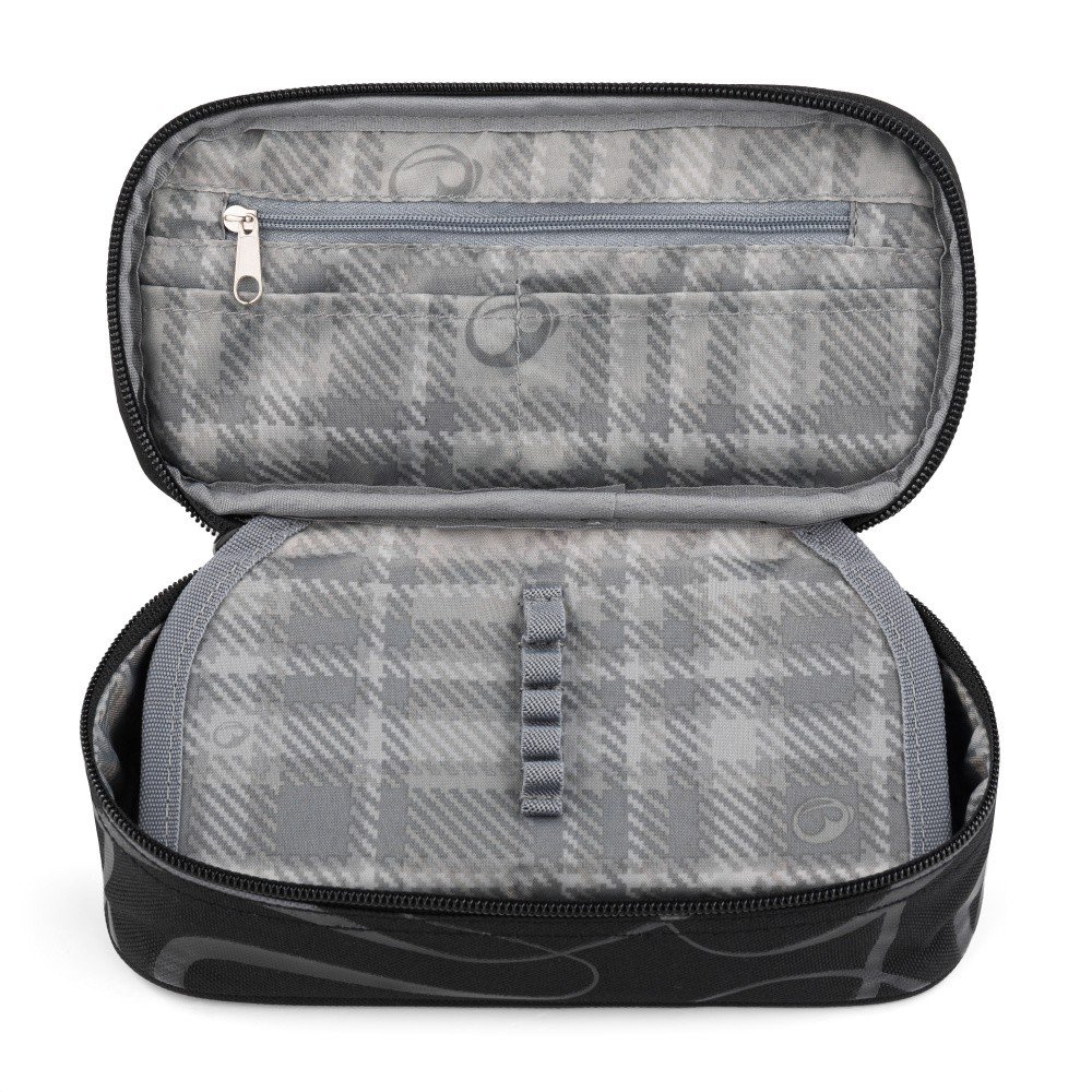 Černé jednokomorové pouzdro k batohu Digital 24 B pro holky. Uvnitř má dvojitou přepážku s 20 pružnými úchyty a tři menší kapsičky.