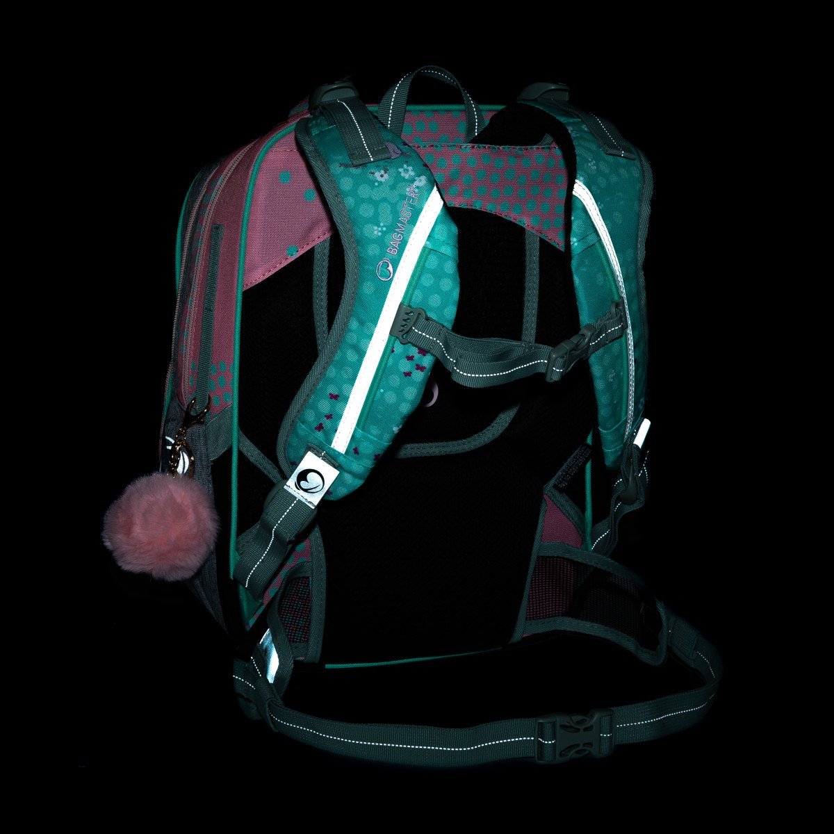 Jemný batoh s jednorožcem a králíčky pro malé slečny od 1. do 3. třídy. Je extra lehký, přitom prostorný. Má dvě velké komory a dvě praktické přední kapsičky. Stojí na plastových nožkách, ve tmě svítí reflexními prvky. Nový zádový systém s nastavitelným hrudním pásem a odlehčeným vyjímatelným bederním pásem myslí na zdravá záda dětí.