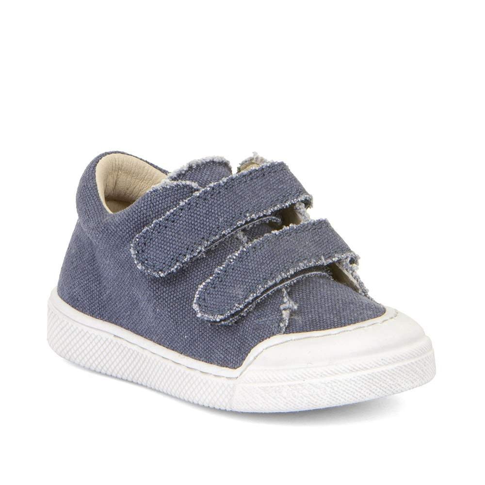 "Plátěné tenisky přicházejí v trendy provedení, ideální do školky, školy nebo pro volný čas doma. Podešev má mimořádně vysokou flexibilitu, neklouže a dobře přiléhá ke všem povrchům. Tenisky mají suchý zip, pomocí něhož se rychle a snadno obouvají. Při výrobě byla použita organická bavlna s certifikátem GOTS. Vyšší model stabilizuje nohu a chrání klouby před vyvrtnutím."