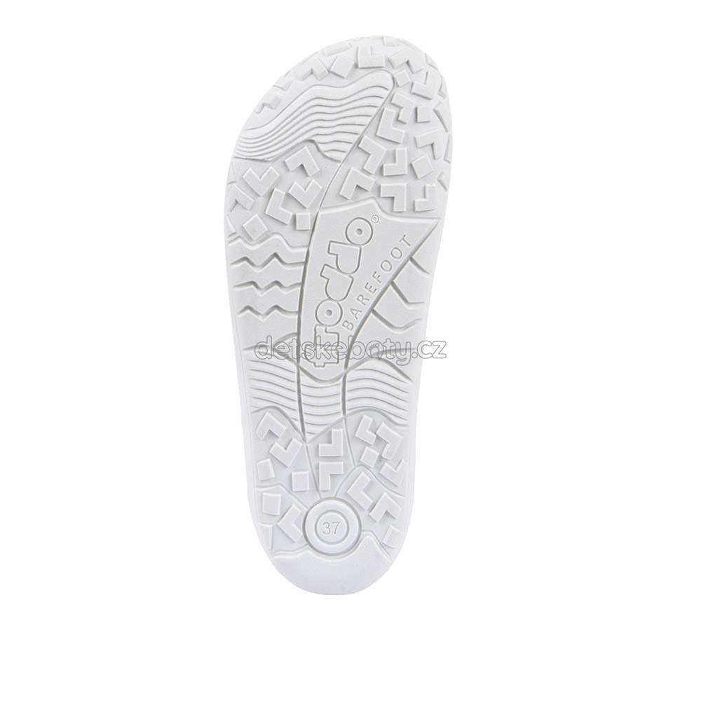 "Velmi lehká obuv, která napodobuje chůzi naboso. Širší prostor pro prsty zajišťuje stabilitu při chůzi. Plochá, vyjímatelná antibakteriální stélka z mikrovlákna. Mimořádně měkká, tenká, flexibilní a ergonomicky tvarovaná podešev s nulovým sklonem paty. Velmi lehké a prodyšné. "