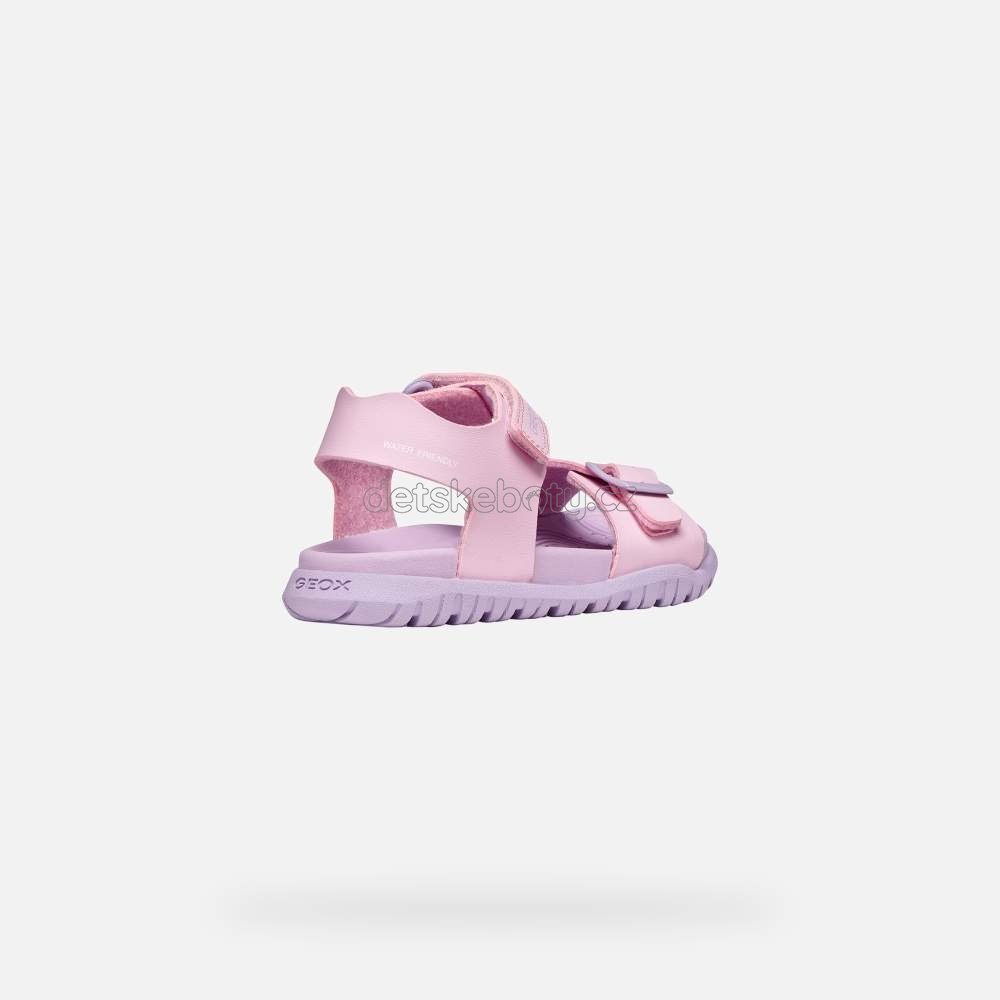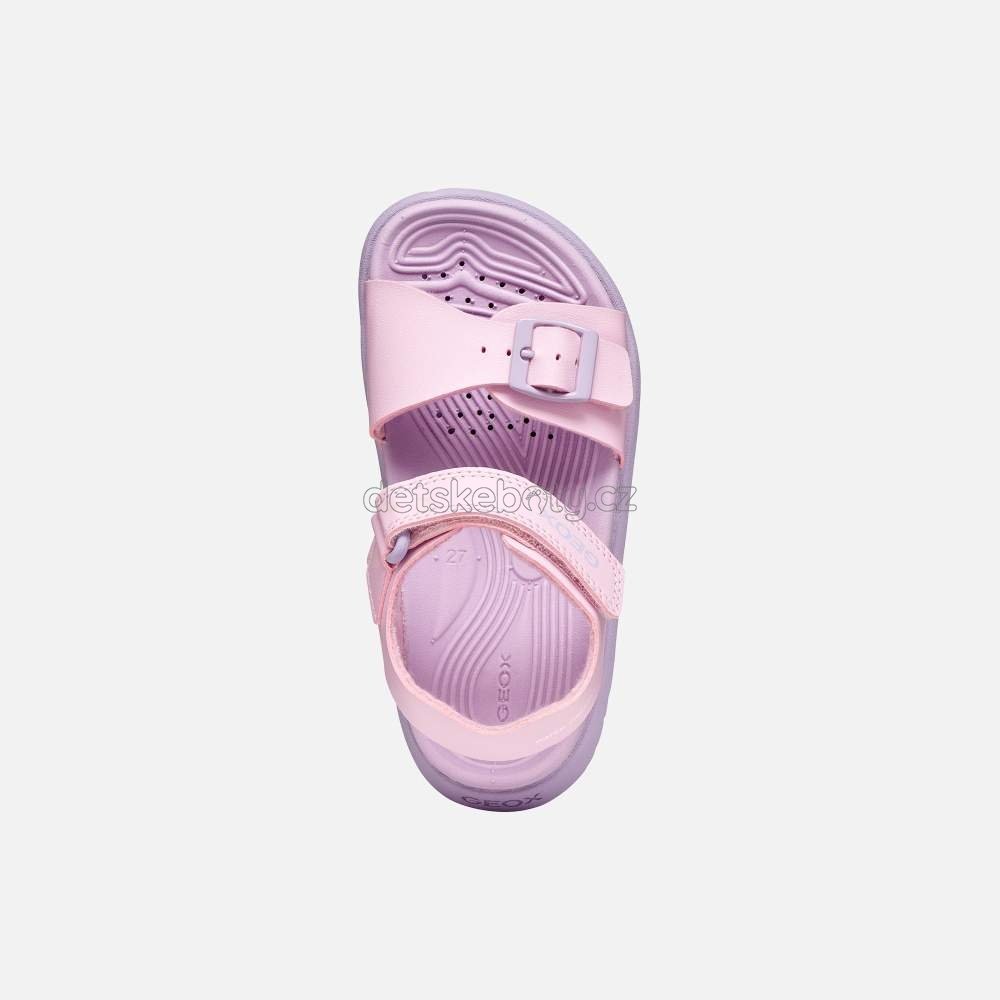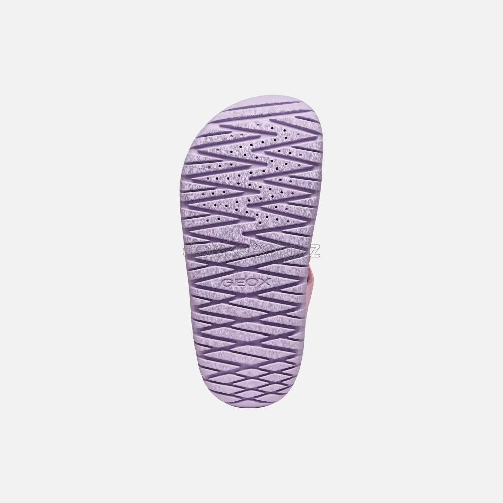 Letní obuv GEOX s patentem ""dýchající podešve"" - perforovaná podešev, která propouští páru ven, ale vlhko dovnitř nepustí. Bota je extrémně lehká, s maximálně ohebnou podešví a díky hebkým páskům příjemně měkce obepíná chodidlo. Zapínání na suchý zip. Rychleschnoucí.