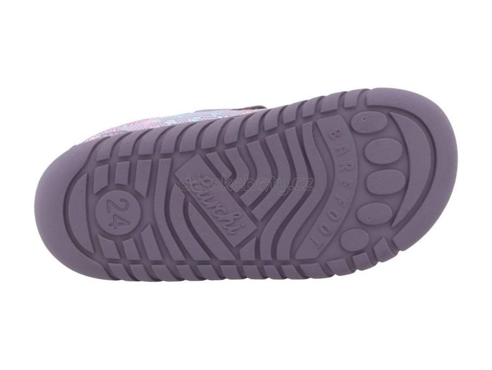 Textilní obuv značky LURCHI ve stylu barefoot. Bota má vytahovací stélku (možno stélku vysušit nebo zkontrolovat pouhým postavením dítěte na ni, jestli má dítě dostatečný prostor před prsty), má velmi ohebnou podešev a je příjemně prostorná v oblasti prstů. Opatek je zlehka naznačen. Zapínání na dva suché zipy.