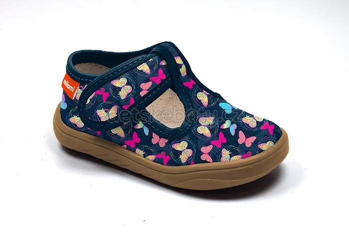 Barefoot papučky značky Milami se zapínáním na suchý zip. Jsou velmi lehké a ohebné, mají koženou vyndávací stélku. Špička je opatřena praktickým okopem. Jsou vhodné i na širší nohu.