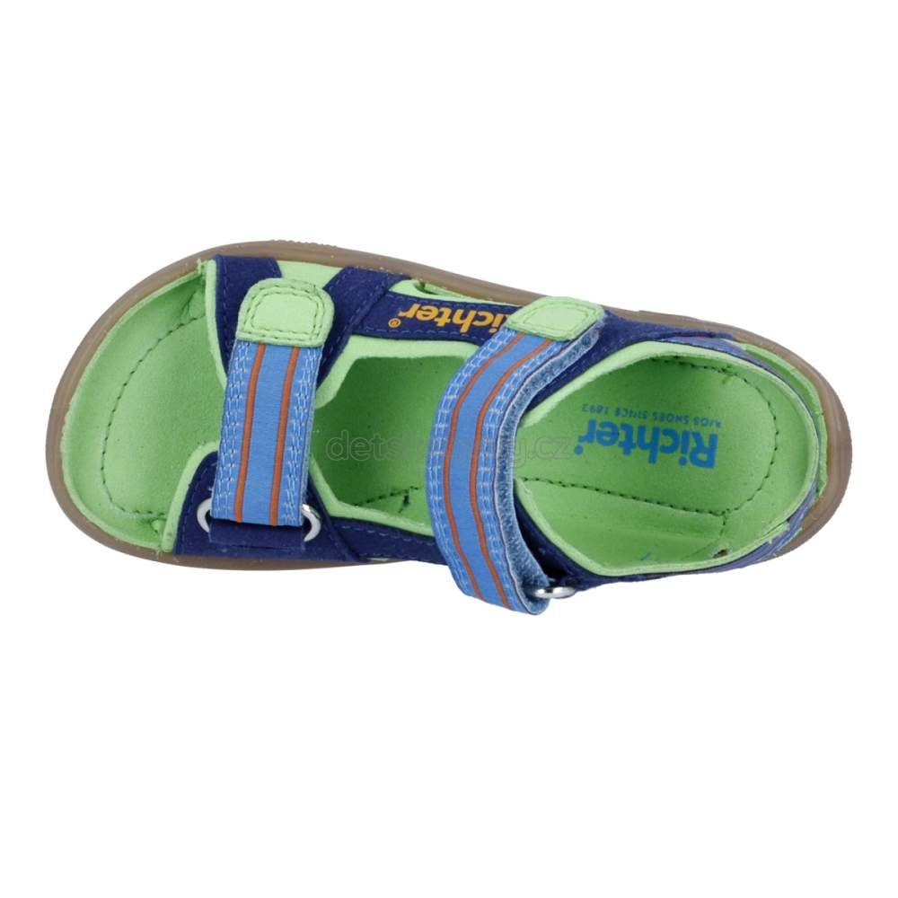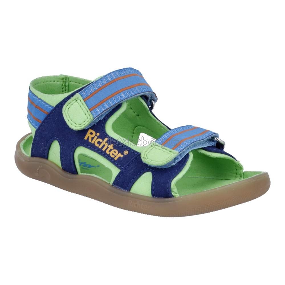 Sandálky značky Richter s otevřenou špičkou a rozšířenou prstovou částí .Zapínání na dva suché zipy. Boty mají maximálně ohebnou podešev a příjemnou textilní stélku.