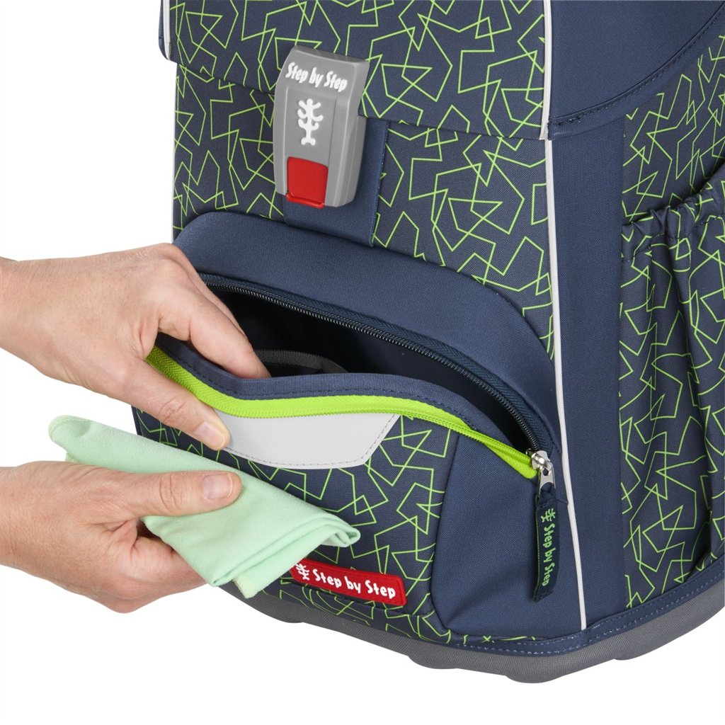 Školní aktovka pro prvňáčky – 4 dílný set, Step by Step BASIS Green Geometric, AGR