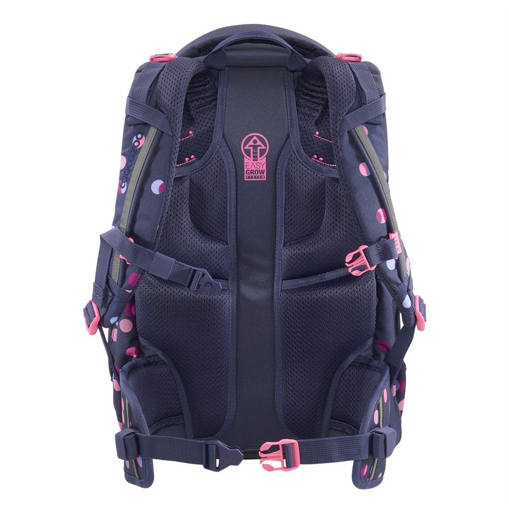 - možnost plynulého výškového nastavení ramenních popruhů pomocí otočného mechanismu uvnitř aktovky zajišťuje