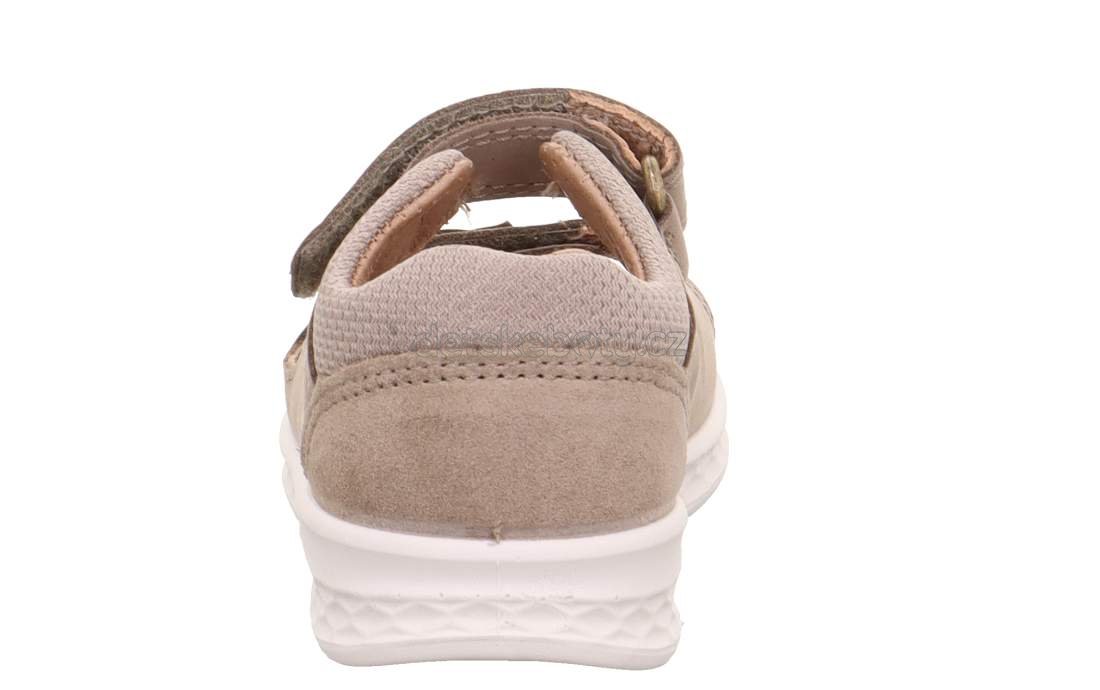 Tyto roztomilé sandálky jsou opravdovým hitem. V předu otevřené. Sandálky se zapínají na dva suché zipy. Bota je velmi lehká, má maximálně ohebnou a protiskluzovou podešev a koženou stélku a pevný opatek, který drží kotník dítěte ve správné poloze. Výrobek nese ekoznačku Modrý anděl, je ve všech směrech šetrný k životnímu prostředí, splňuje zdravotní a bezpečnostní standardy.