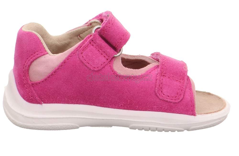 Sandály značky Superfit s otevřenou špičkou a zapínáním na dva suché zipy. Boty mají maximálně ohebnou podešev, která je měkká, zároveň pružná a díky trendy vzoru drážek vypadá opravdu módně. Botky mají koženou stélku a pevný opatek. Jsou vyrobeny z kvalitní kůže, která zaručuje pohodlí při nošení.