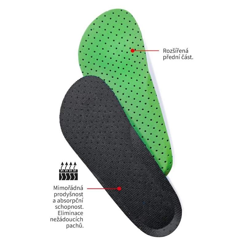 Stélky disponují rozšířenou přední částí, která tak umožňuje využití právě pro typ boty barefoot. Výrazná perforace spodní části zajišťuje maximální prodyšnost a celkovou termoregulaci v botě.